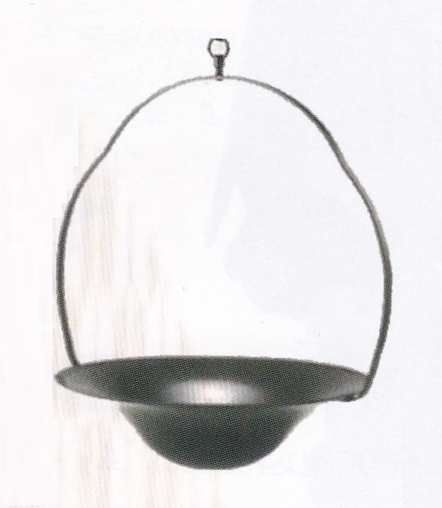 銅製の水盤型吊り花器です。