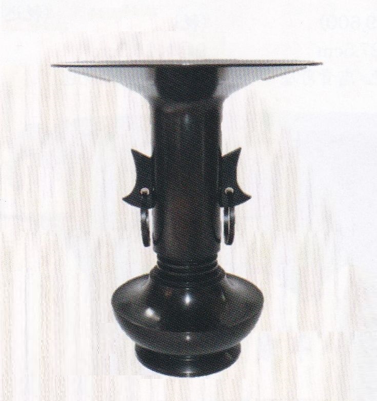 中央の胴部分が筒状で遊環耳付の格調高い立華瓶です。