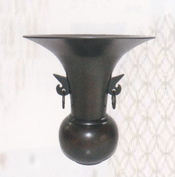 古典調の下カブラ型で環付耳が特徴の格調高い銅製花器です。