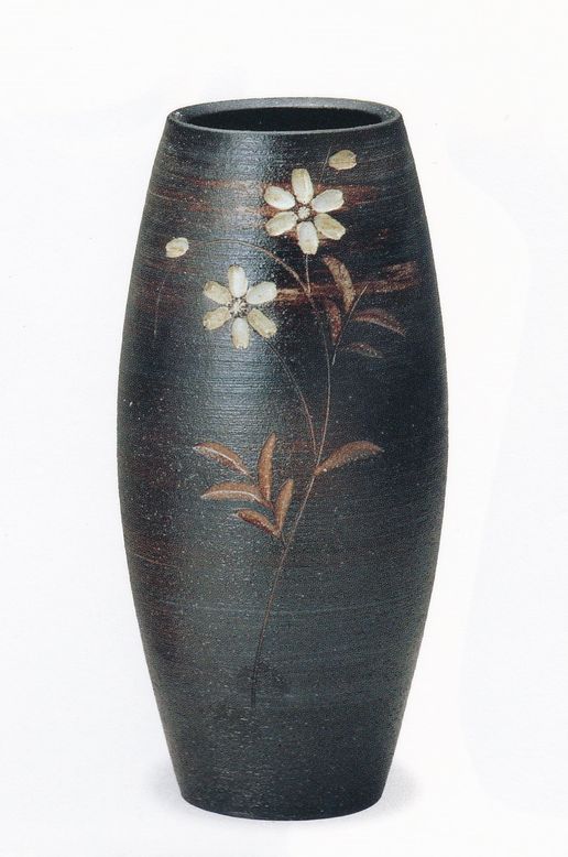 黒化粧花彫花入 10号 B013-03 [B013-03]