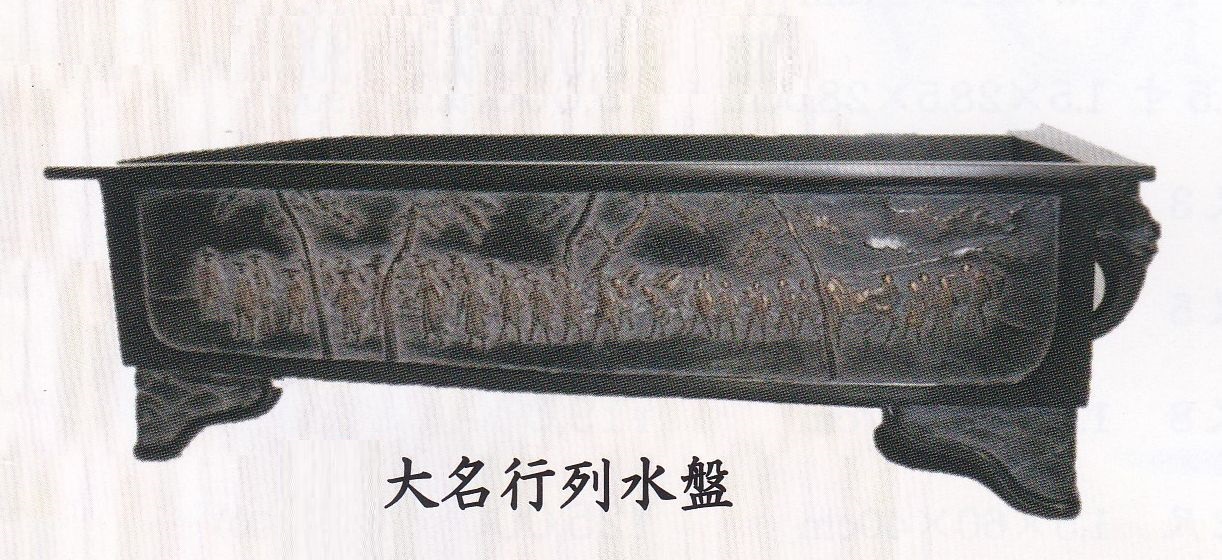 銅器 砂鉢尺五生花用大名行列水盤 [DHM-6-98]