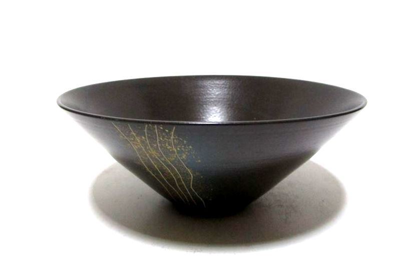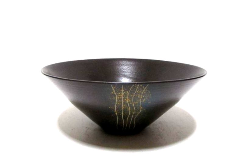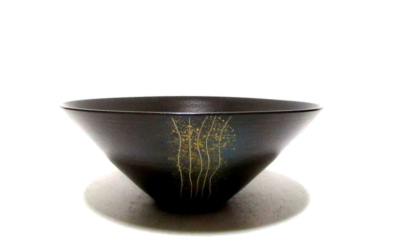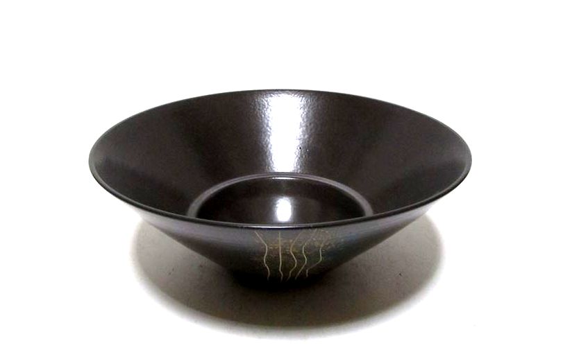 ダークグレー地の上に数本の釘彫りラインが施され、その上に金粉が散らされています。